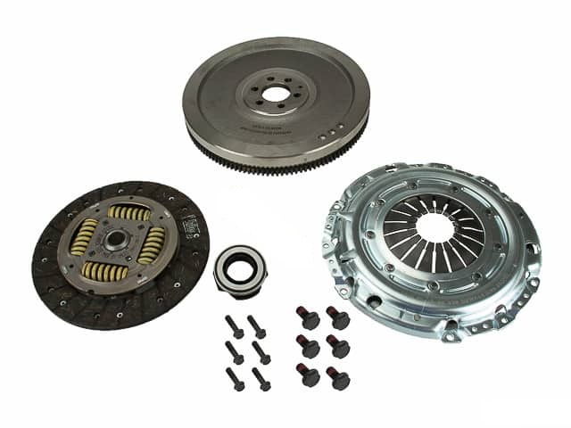 Valeo clutch kit for VW Mk5 vehicles with 1.9L TDI or 2.5L gas engines and 5-speed manual transmissions. This kit features a proprietary single mass flywheel, and is an economical direct replacement for the at-times unreliable dual mass installed in the factory.